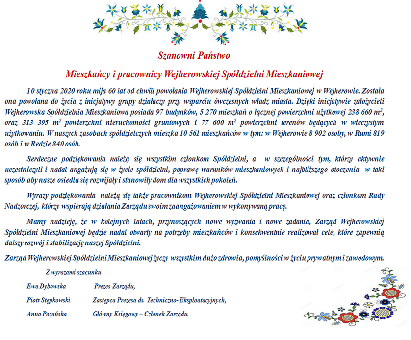 Siedziba Zarządu Wejherowskiej Spółdzielni Mieszkaniowej mieści się w mieście Wejherowie w woj. Pomorskim.